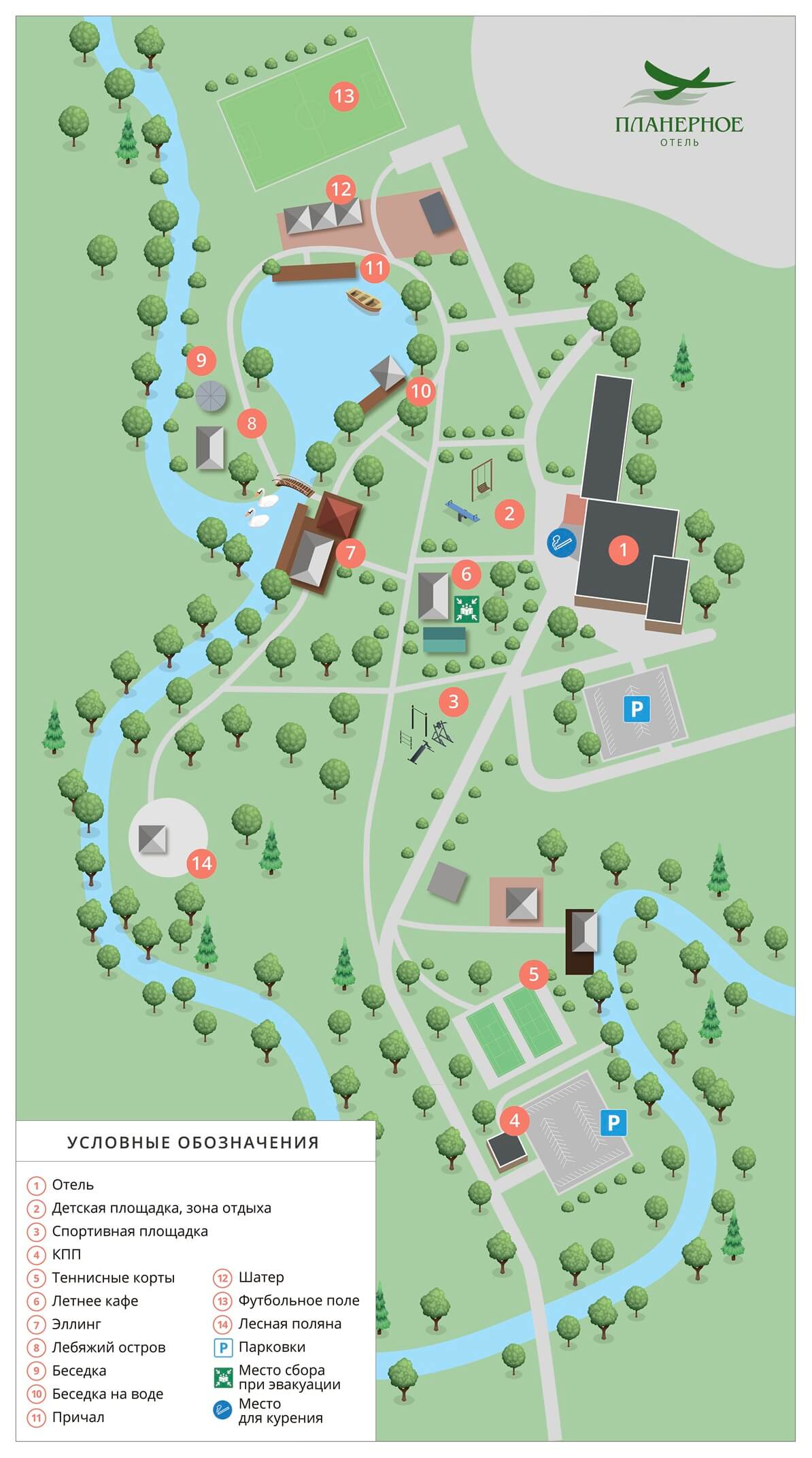 От МКАД по Новокуркинскому шоссе 74 км, затем налево на Машкинское 3 км, направо по указателю «Отель Планерное». Следовать по указателям.